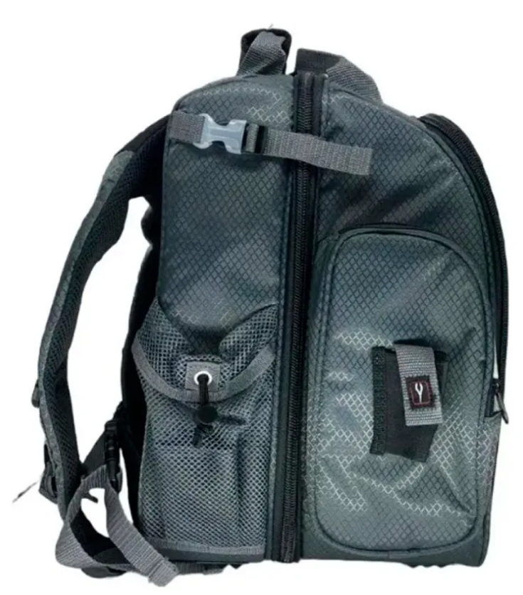 Essa bolsa tem o diferencial de ter espaço para guardar suas iscas, suas carretilhas e molinetes, e todos os seus acessórios de pesca.