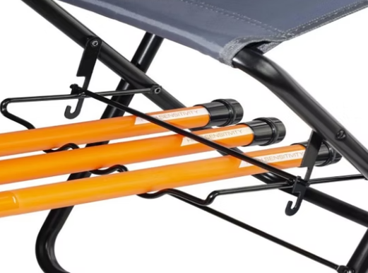 Possui suporte acoplado na parte de baixo para 3 varas com duas regulagens de altura.