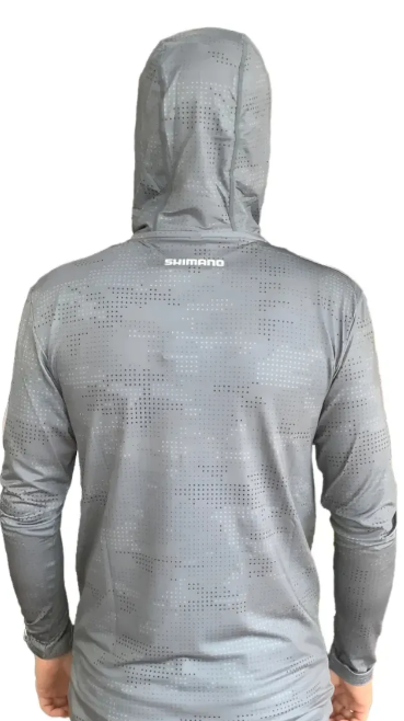 Camiseta de Pesca Shimano com Touca (Cinza Claro, +50 UV)