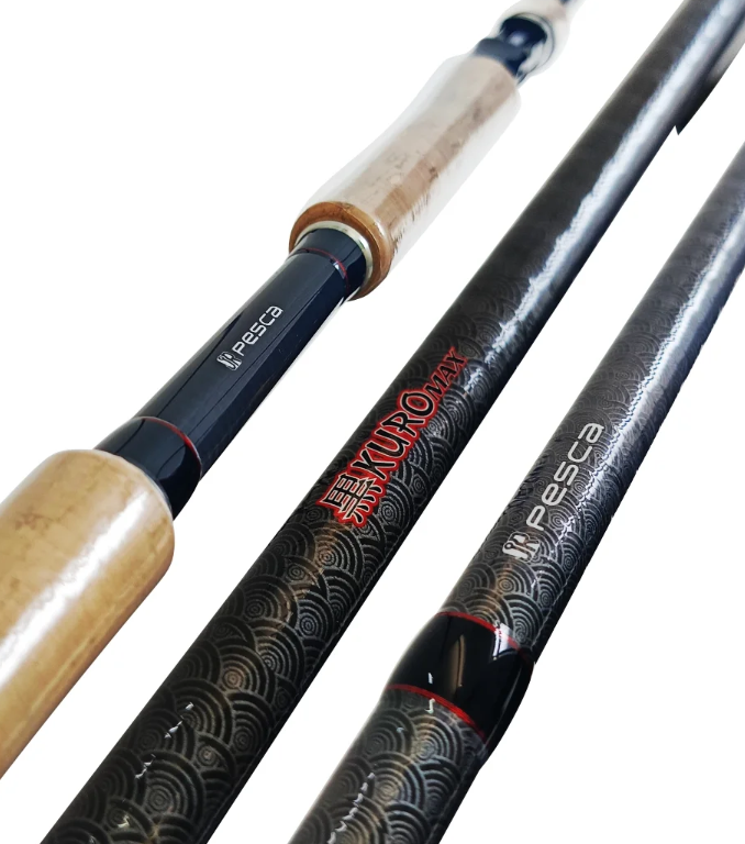 A Qualidade sem igual da JRPesca, desenvolvida com carbono IM7, metais, resina, linha, grafite e E.V.A. ao longo de sua extensão, proporcionando uma ação rápida e com casting alto de até 120g. Conta com 8 passadores de pata dupla além da Ponteira anti enrosco, Reel Seat em Black Piano reforçado, e cabo bipartido em E.V.A de alta densidade, com acabamento Butt Cap com marca Kuro.