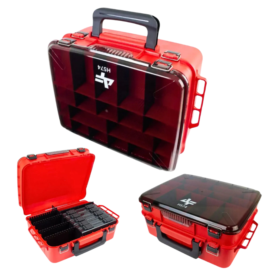 O novo lançamento da Albatroz em 2024, a H574, oferece a solução perfeita para guardar suas iscas e acessórios de maneira ordenada e protegida. Esta versátil caixa estojo possui 20 compartimentos, todos equipados com divisórias removíveis para se adaptarem às suas necessidades específicas. Além disso, a segunda parte da caixa apresenta 4 suportes dedicados para iscas do tipo spinner bait, juntamente com 5 estojos adicionais. Há ainda espaço disponível para mais 2 estojos ou qualquer outro equipamento que você deseje transportar. Com a H574, você terá tudo o que precisa ao seu alcance durante suas aventuras de pesca, garantindo uma experiência ainda mais completa e organizada.